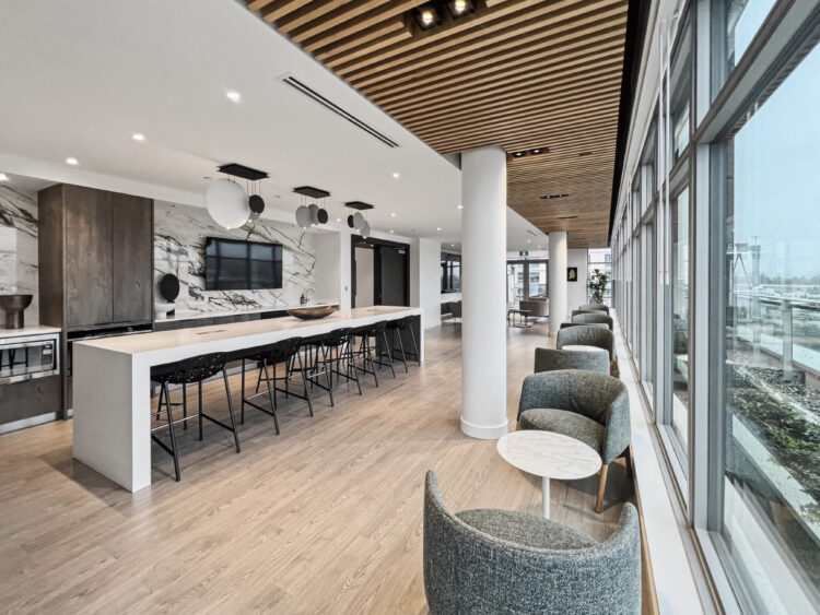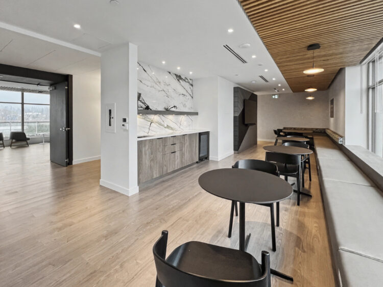 Amenities: Concierge service, bike mechanical room, exercise centre, and a residents’ lounge with study areas and rooftop terrace with BBQ and water and city views.