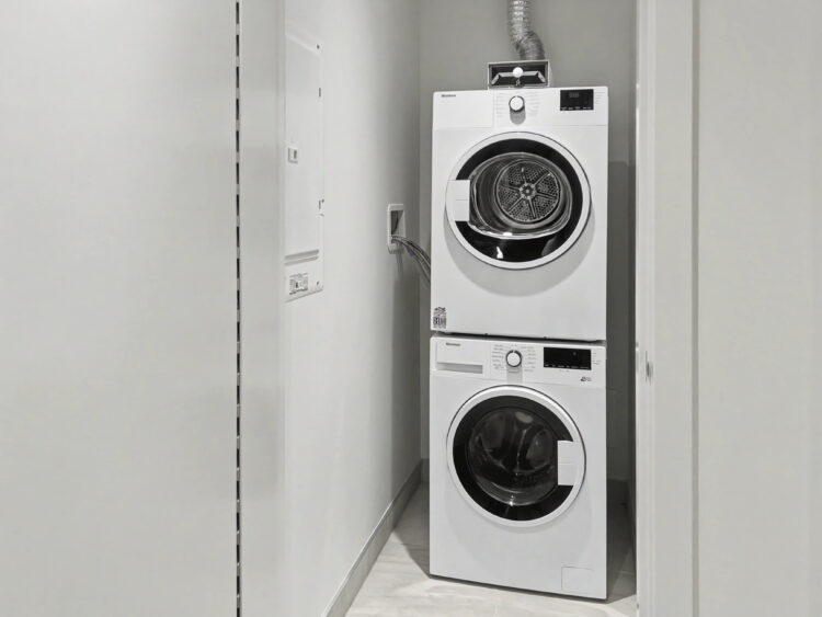 Laundry: In-suite washer and dryer, with space for additional storage or a small folding table.