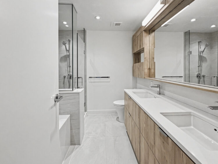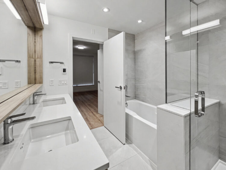 Bathrooms: Two full bathrooms with NuHeat in-floor heating (Primary ensuite with double-sink vanity, separate shower, and bathtub. Second bathroom with tub / shower combination.)